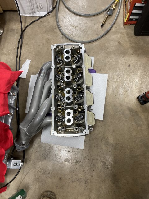 Next performed a leak down test to see where it’s at, not much of a change since before the whipple but with the blower off I sprayed some WD40 on top the visible intake valves and noticed 7 and 4 intake valves bubbling a bit and since now at 25 psi of boost anything over 17 degrees of timing I’d get a air bubble in my Tstat housing, 16 degrees no air, 17 and above air, so sounds like the 8740 ARP studs are stretching under the cylinder pressure and heads lifting somewhere. Soooooo good time to pull the heads to replace studs with better ones, better head gaskets, a good valve job, hell port them while apart so off the Thitek their going. Plugs looked like they came right off of the boxes yet, amazing how clean alcohol runs!!